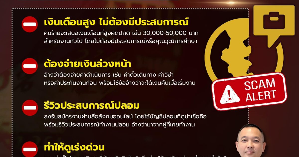 1. เงินเดือนสูง ไม่ต้องมีประสบการณ์ – คนร้ายจะเสนอเงินเดือนที่สูงผิดปกติ เช่น 30,000-50,000 บาท สำหรับงานทั่วไป โดยไม่ต้องมีประสบการณ์หรือคุณวุฒิการศึกษา