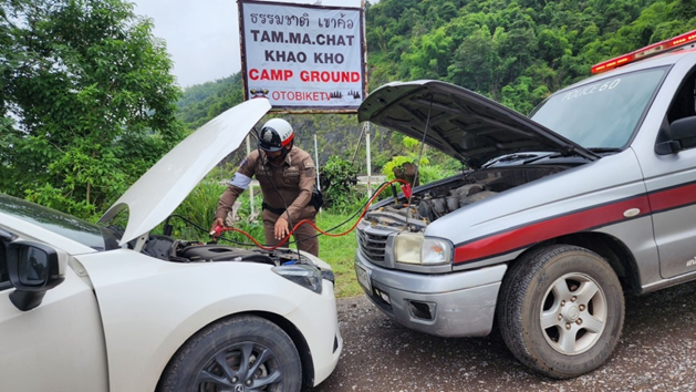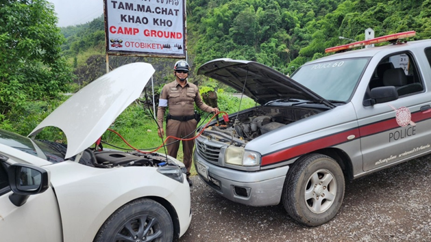 ชุดจราจร สภ.เขาค้อ ให้ความช่วยเหลือ รถนักท่องเที่ยวแบตเตอรี่หมด หน้าร้านธรรมชาติเขาค้อ